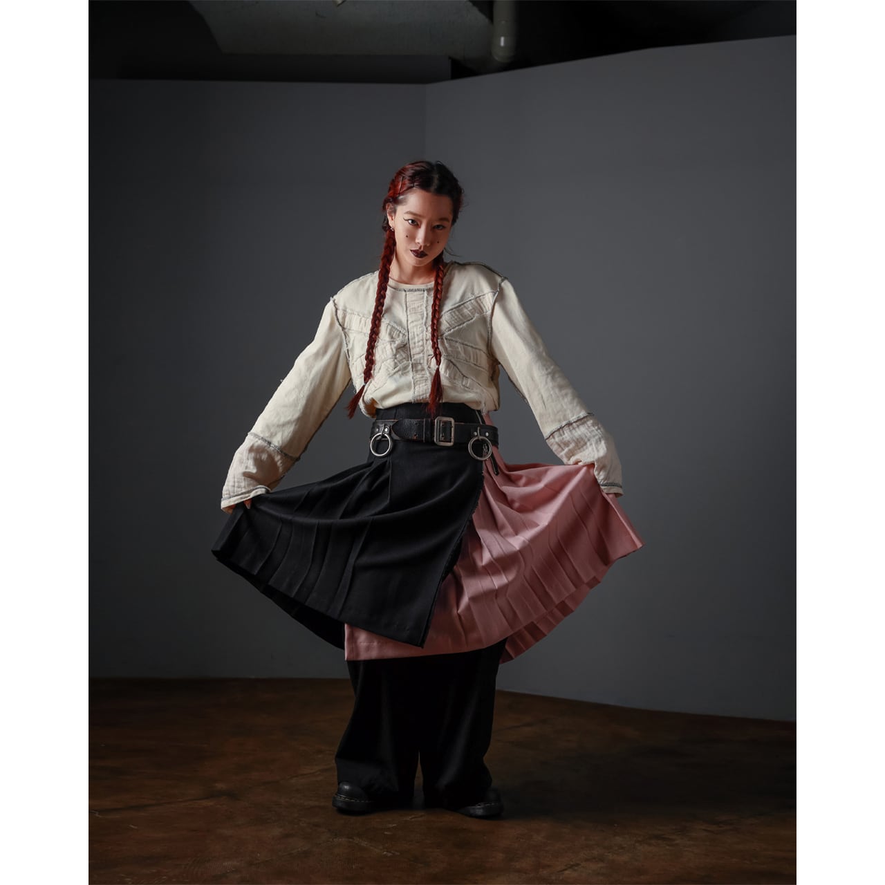 ※プリーツ加工は永久的なものでなく、着用やクリーニングを繰り返すことにより消失する恐れがあります