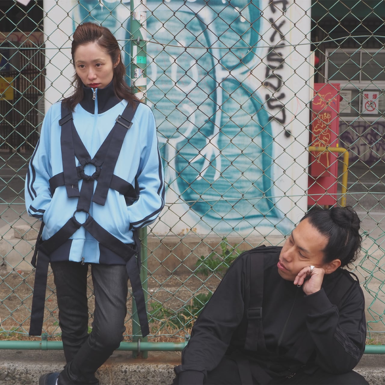 クラシックな色合いのジャージをベースに、アクセントにパラシュートベルトを装着しました