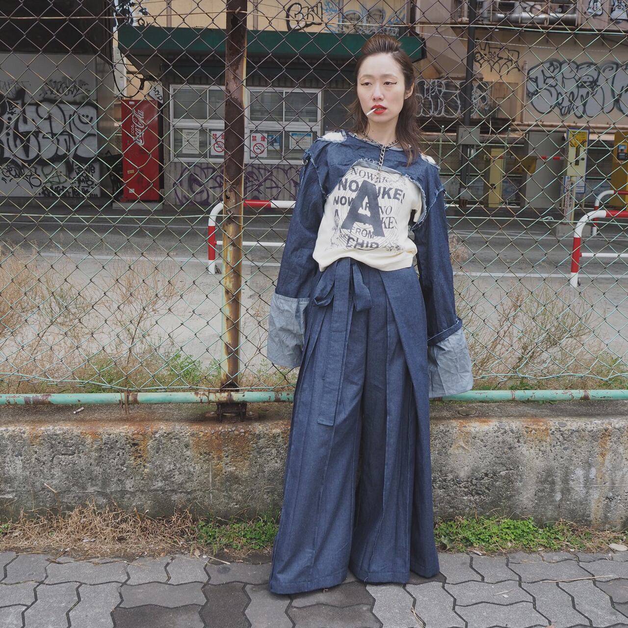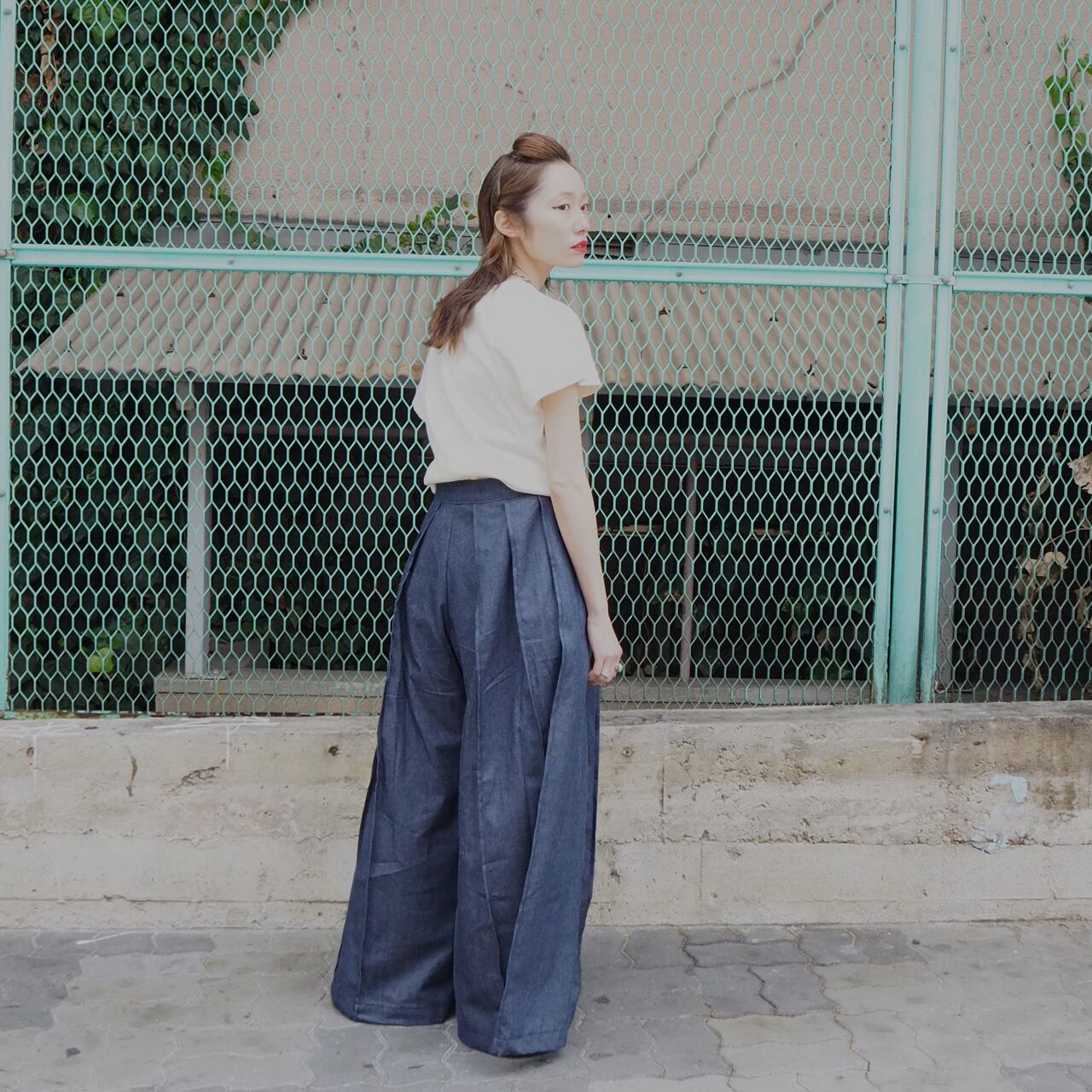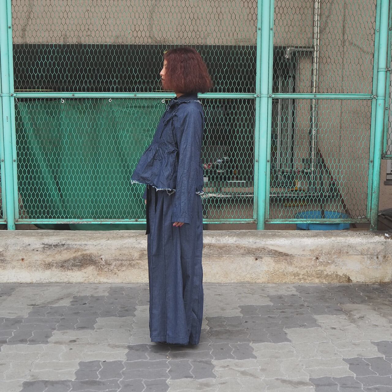 綿100%のデニムなので、タックが薄くなりがちだと思い、タック山と谷をステッチで叩いています