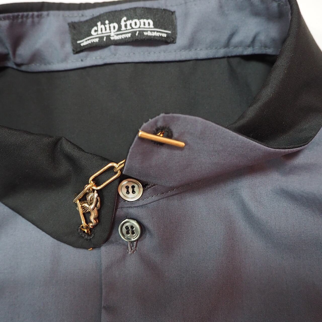 襟先に菊穴があり、取り外し可能なチャームがついています